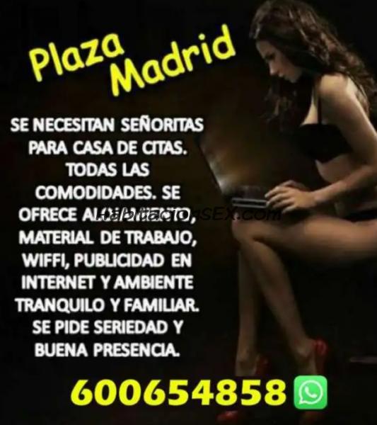 Se necesitan chicas para chalet de citas. Con todas las comodidades. se ofrece alojamiento, material de trabajo, wifi, publicidad en internet y ambiente tranquilo y familiar. se pide seriedad y buena presencia. no importa nacionalidad. Mayor de edad clientela fija. grandes beneficios, ubicado en la mejor zona de Madrid, Ventas, muy bien comunicado con tiendas, transporte publico y ocio a tu alcance para tus horas libres. Atendemos Whatsapp. PAGO DIARIO. Pide tu plaza de turno o 24 horas